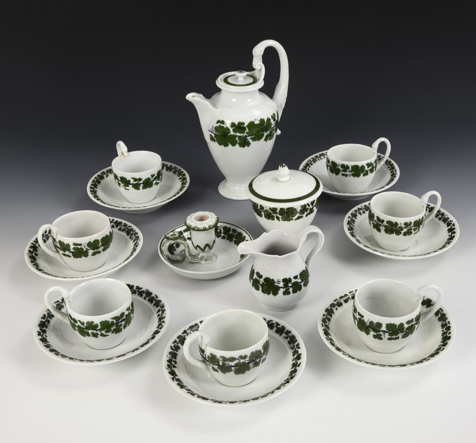 Schwanenhenkel-Kaffeeservice mit Weinlaubdekor. Meissen.