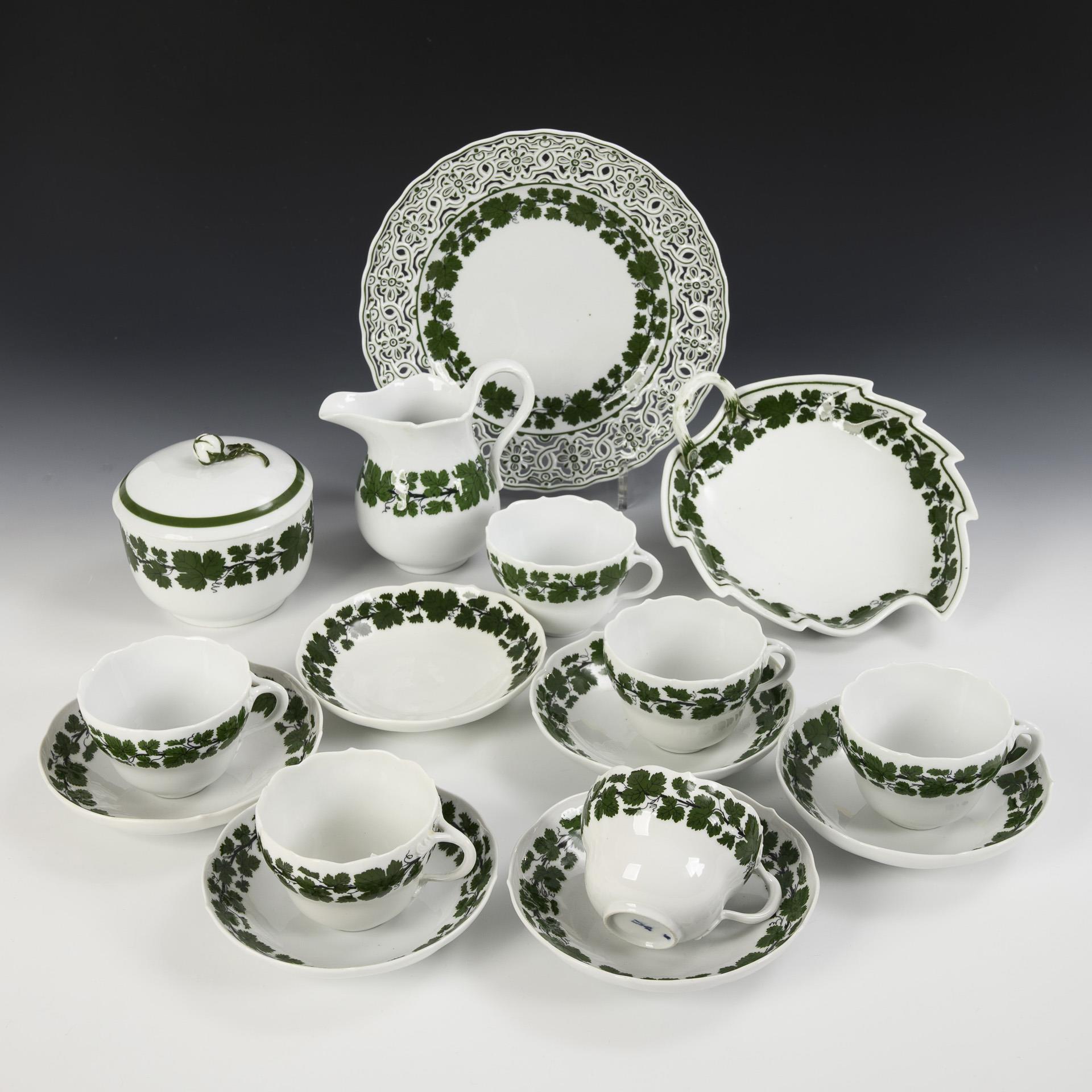 15 Teile eines Speiseservice mit Weinlaubdekor. Meissen.