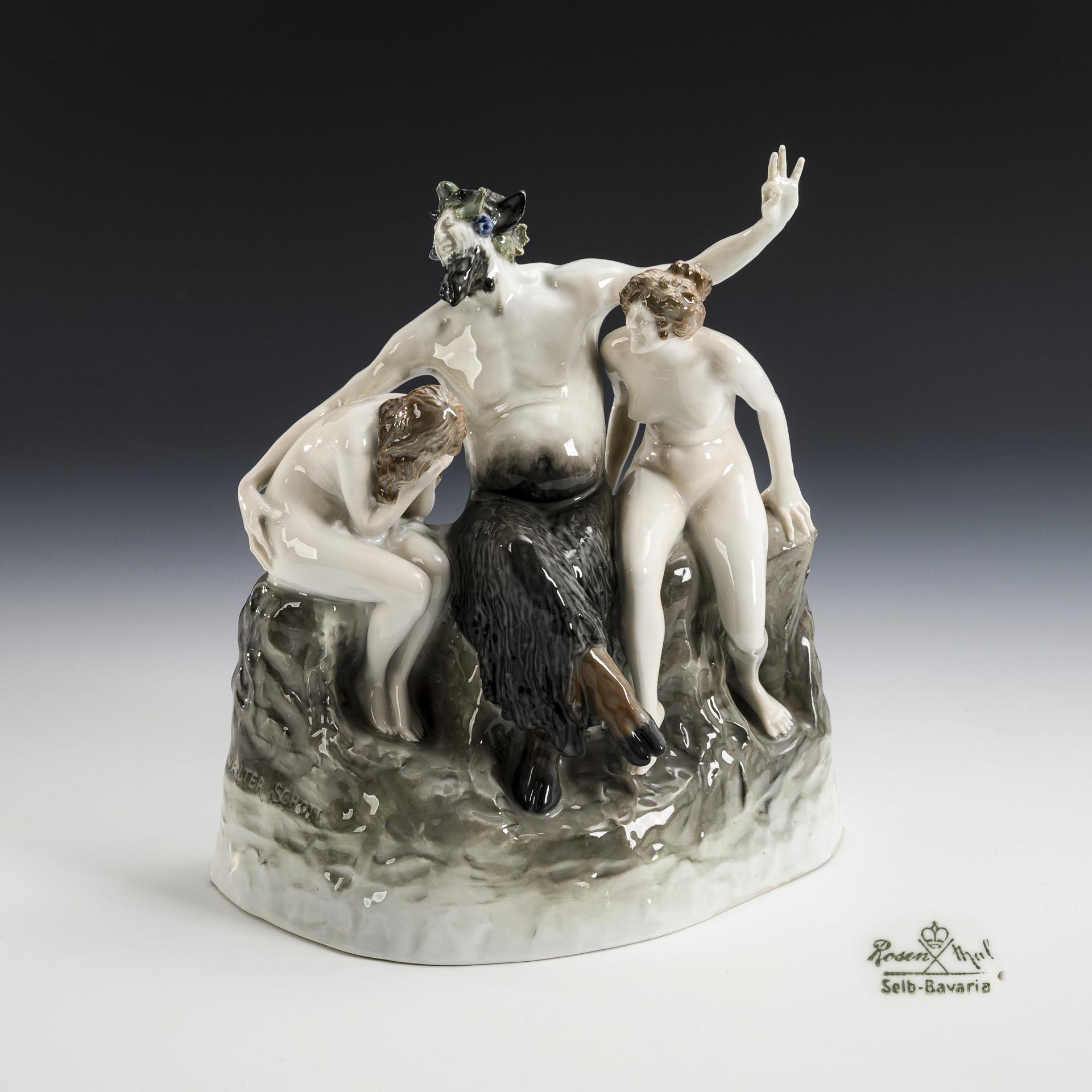 Jugendstil-Figur: Faun mit Nymphen ("Die Sünde"). Rosenthal.