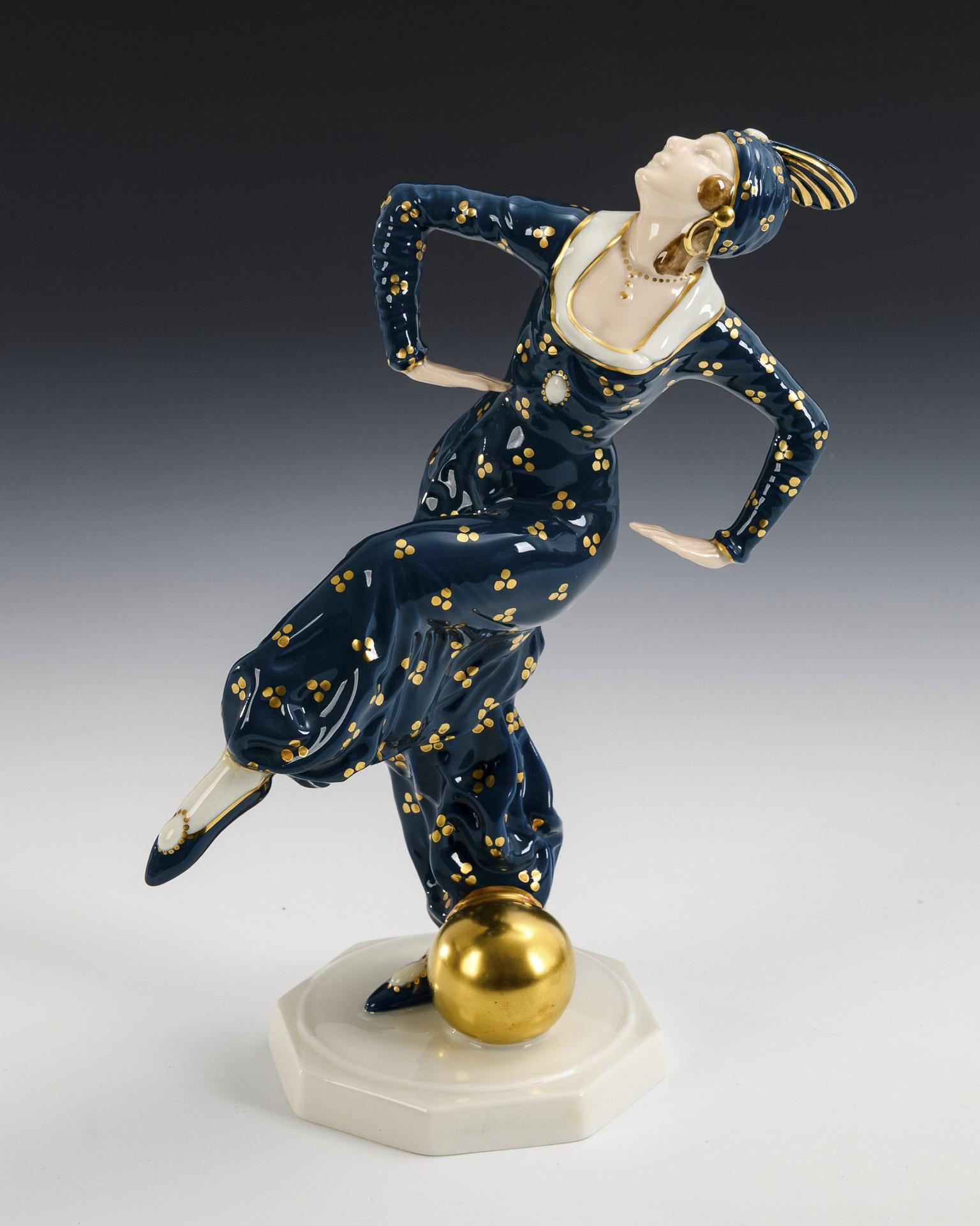 Art-déco-Tänzerin mit Kugel. Hutschenreuther.