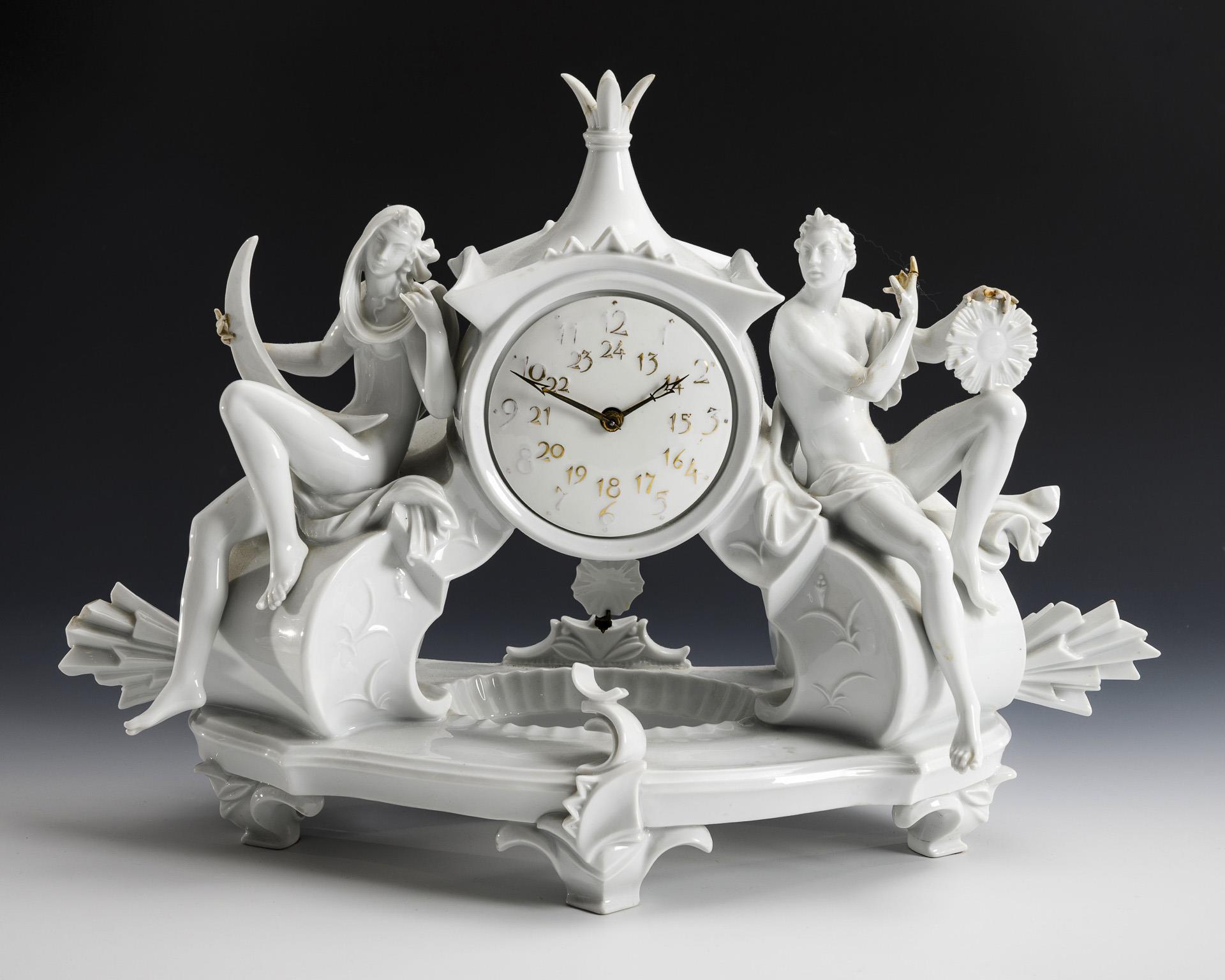 Seltene Art-déco-Porzellanuhr "Tag und Nacht". Rosenthal.