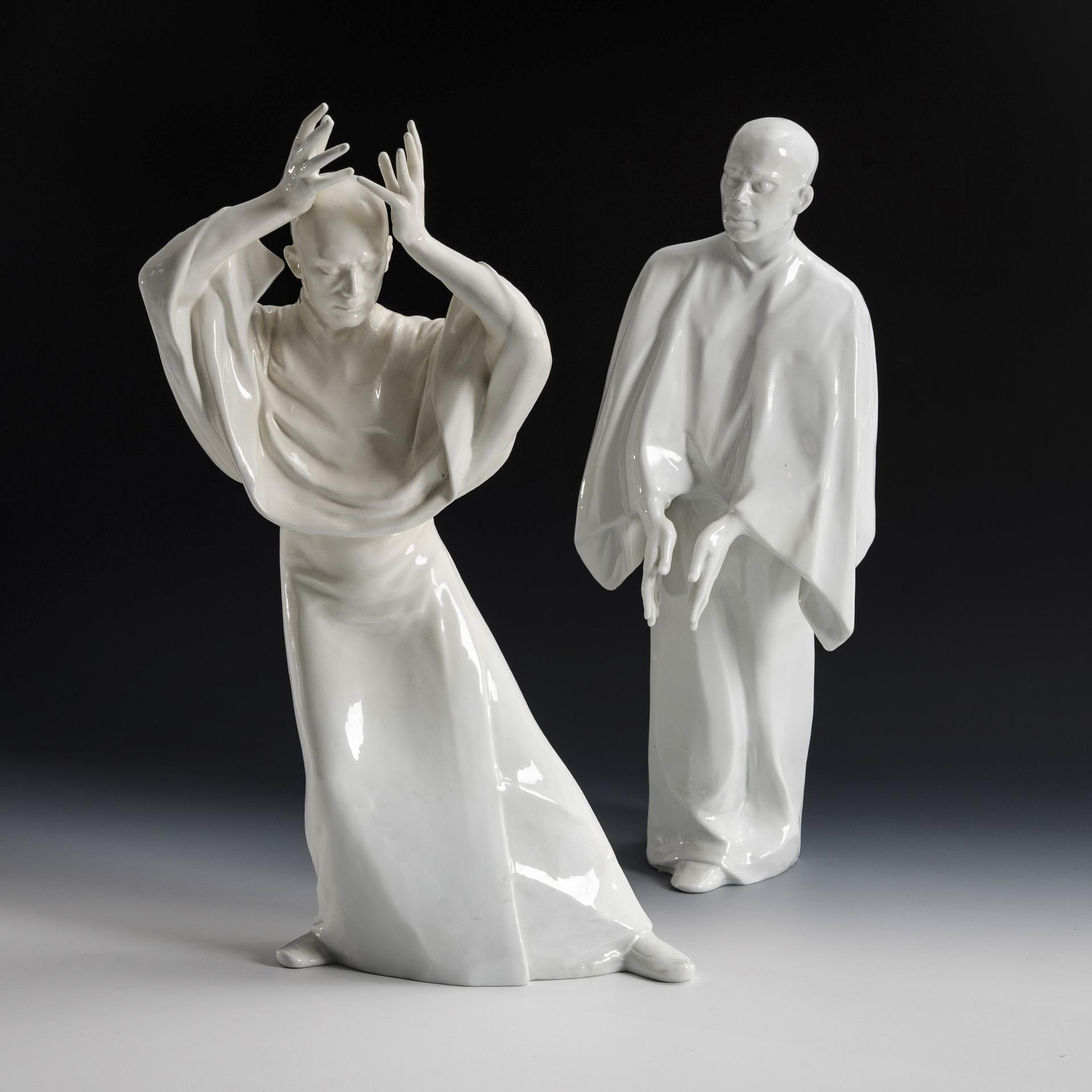 1x "Luzifer I", Modell-Nr. 1958, Entwurf 1951: Darstellung des Ausdruckstänzers Harald Kreutzberg (1902-1968) als Luzifer, sich mit erhobenen Händen selbst krönend. / 1x "Luzifer II Hände nach unten", Modell-Nr. 1959, Entwurf 1947: Darstellung des Tänzers Harald Kreutzberg als Luzifer mit zum Boden weisenden Händen