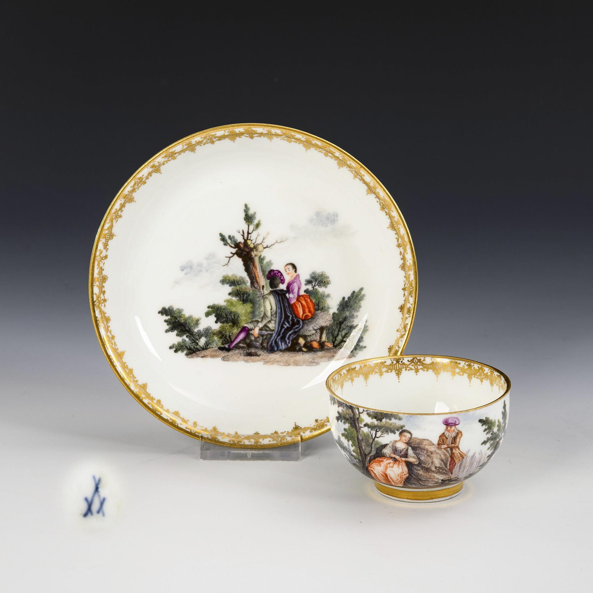 Barocke Tasse mit Watteau-Malerei. Meissen.