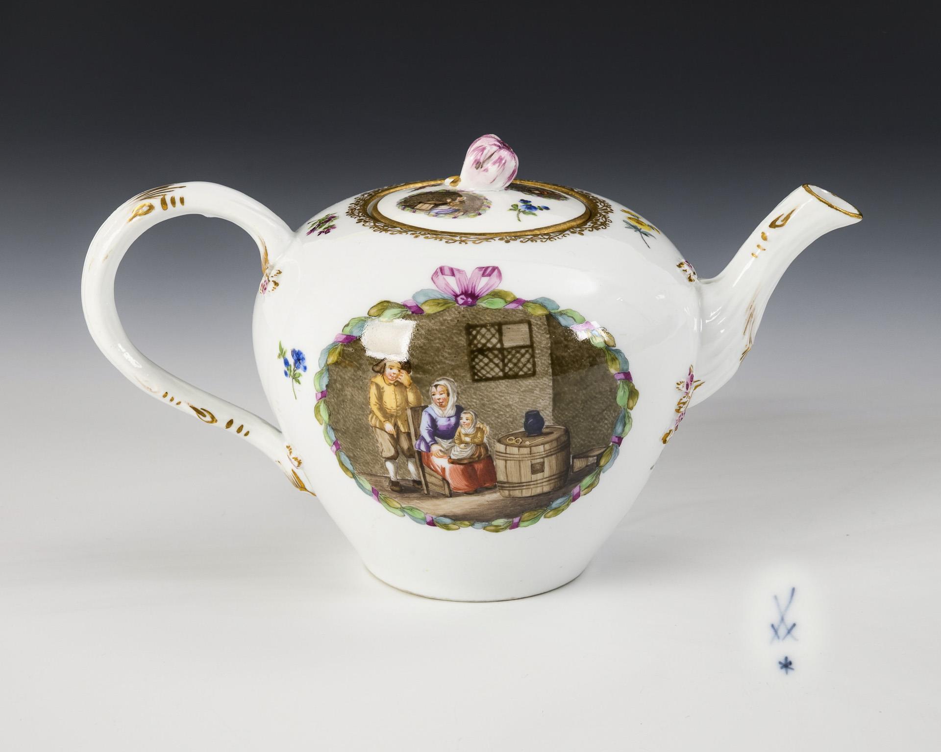 Barockes Teekännchen mit Genremalerei. Meissen.