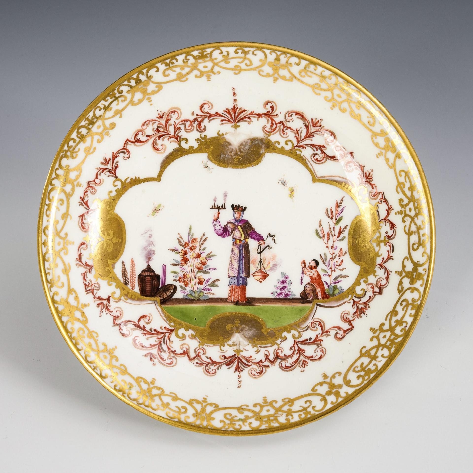 Barocke Untertasse mit Chinoiseriemalerei. Meissen.