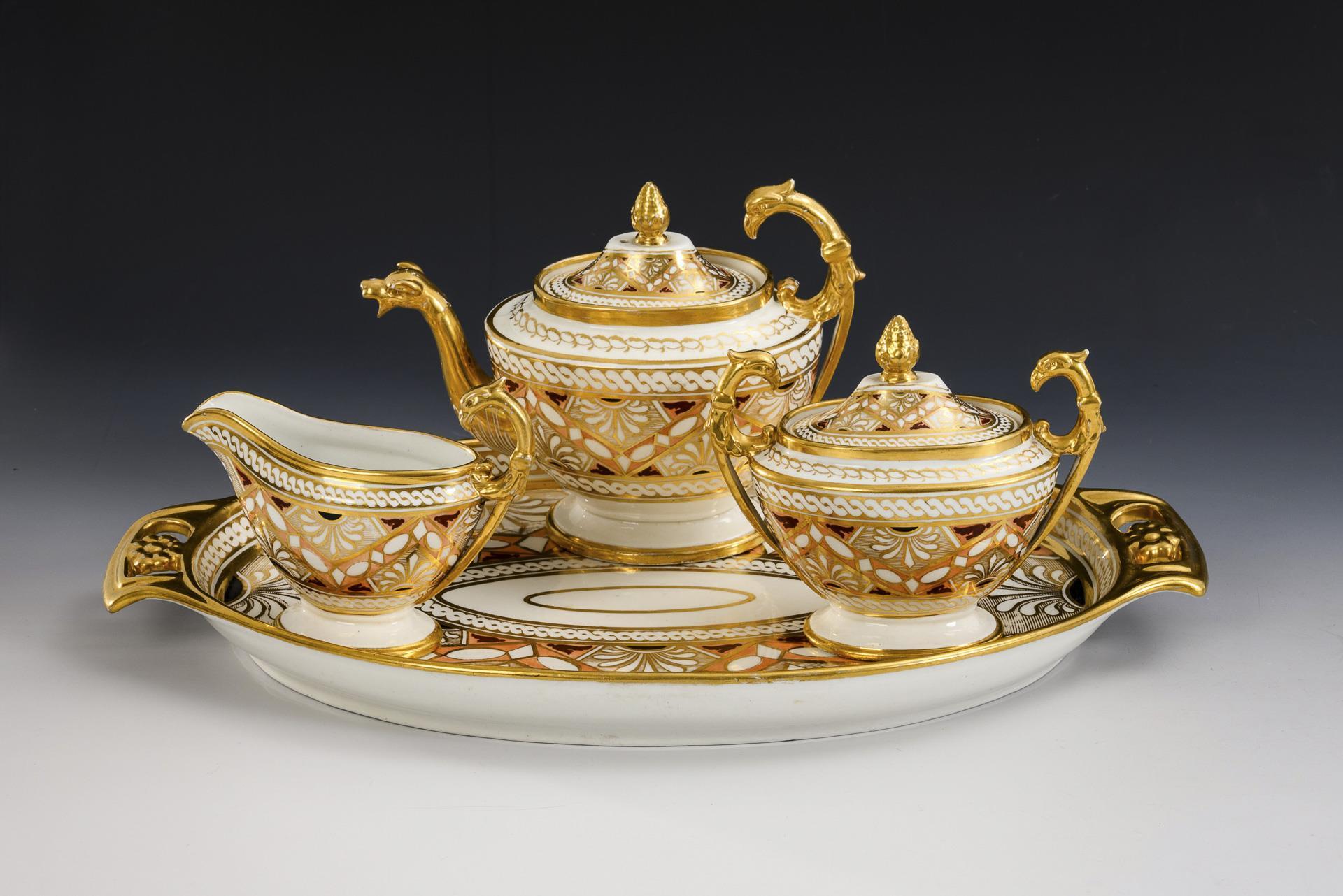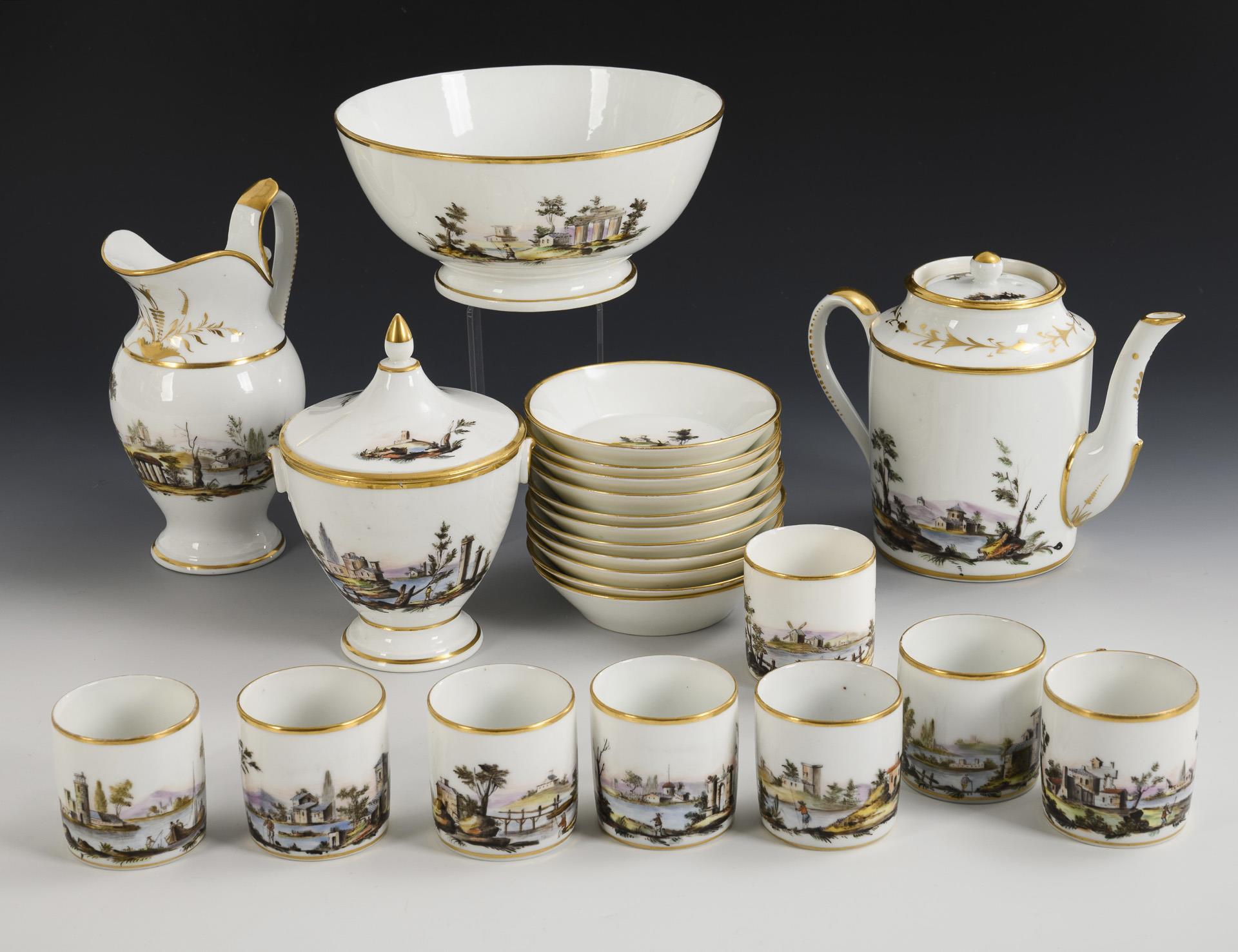 Empire-Kaffeeservice mit Landschaftsmalerei.