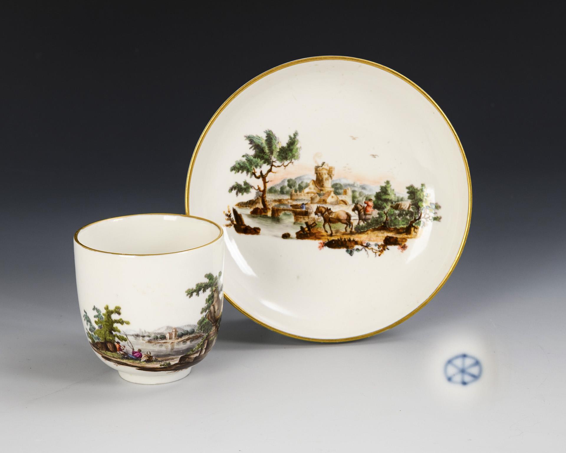 Barocke Tasse mit Landschafts-und Figurenmalerei. Meissen.