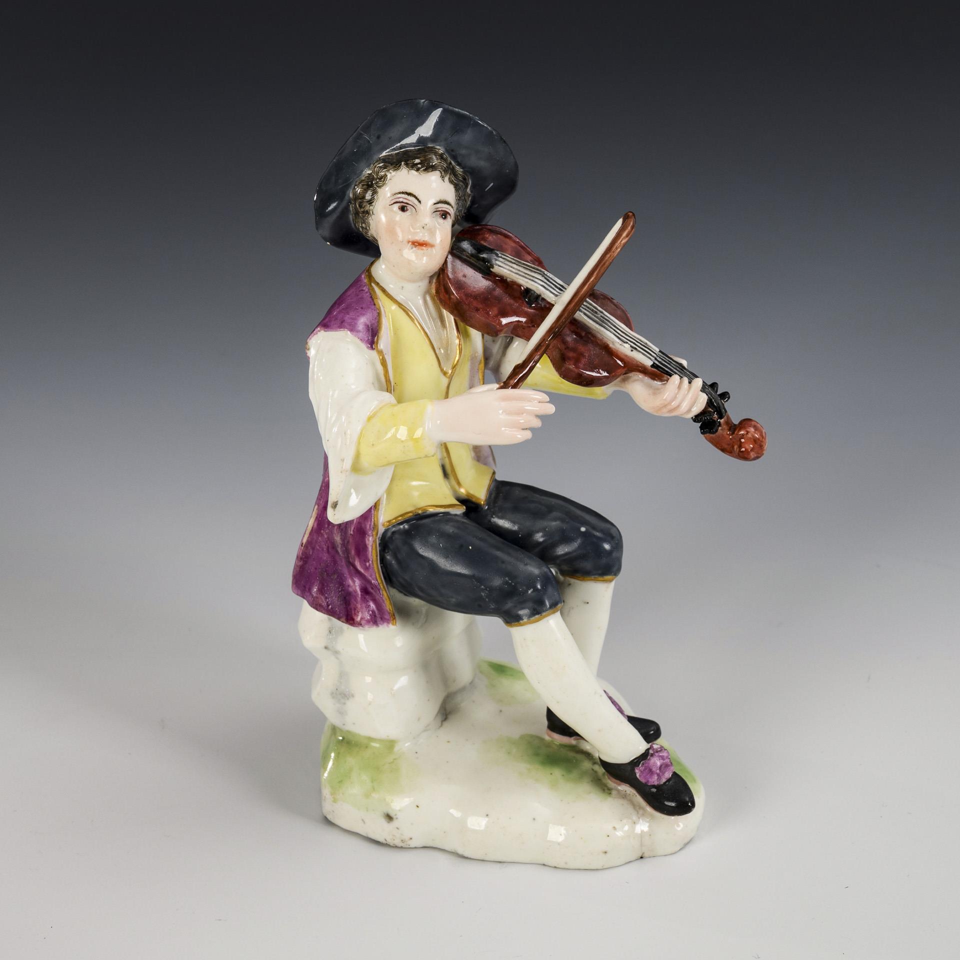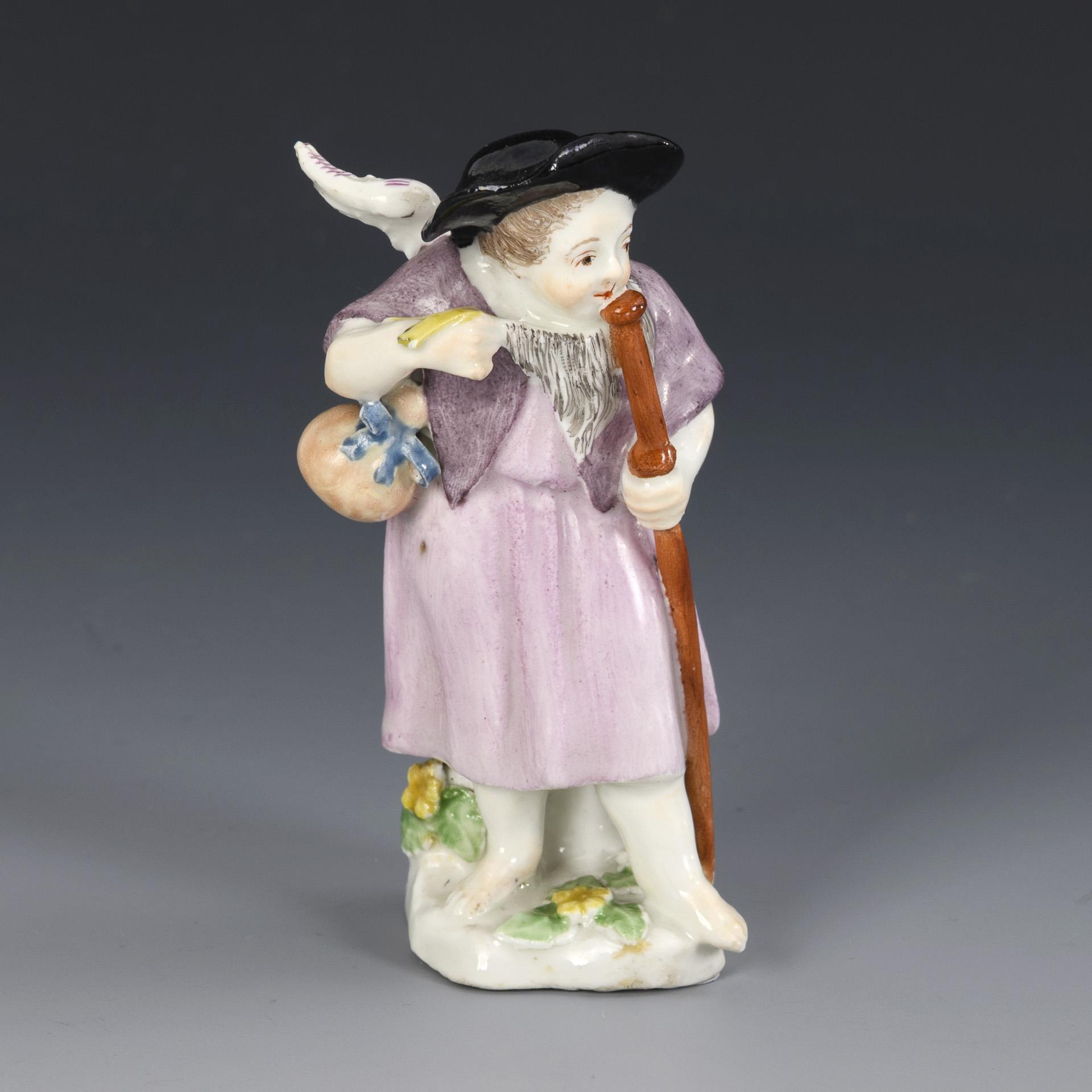 1x Cellist aus der Serie der "Galanten Kapelle", Modell-Nr. 5, Entwurf 1755/60 von J. J. Kaendler (1706-1775) (H 12 cm). / 1x Drehleierspielerin, Modell-Nr. 2582, Entwurf 1745 von J.J. Kaendler, (H 13 cm)