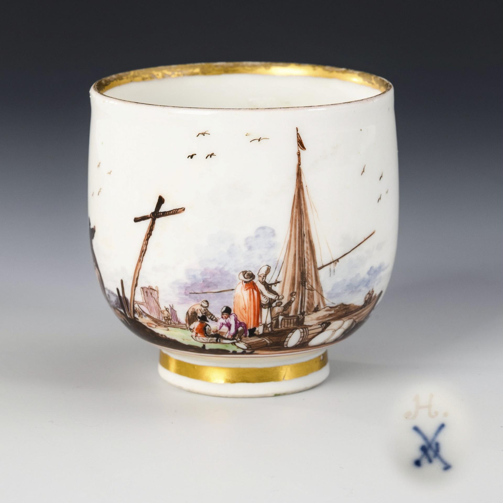 Barocker Becher mit Kauffahrteimalerei. Meissen.