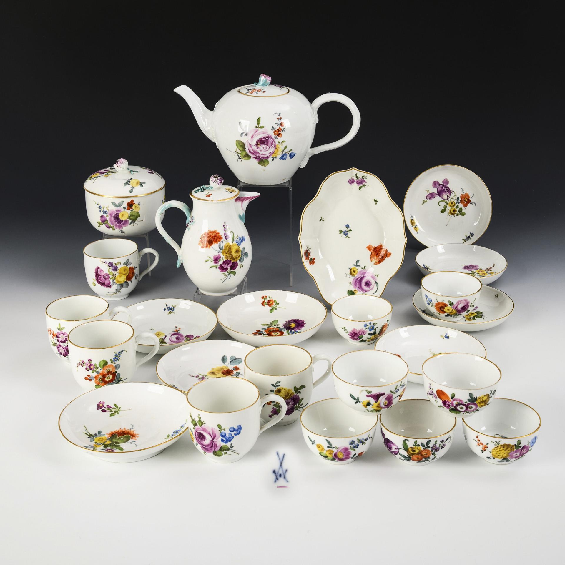 Barockes Teeservice mit Blumenmalerei. Meissen.