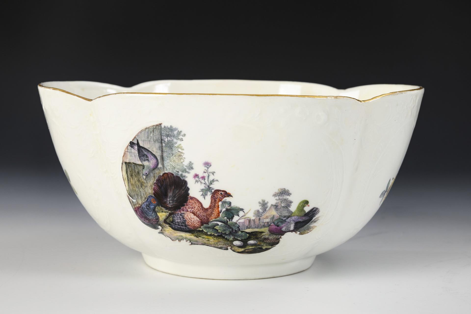 Barocke Vierpasskumme mit Vogelmalerei. Meissen.