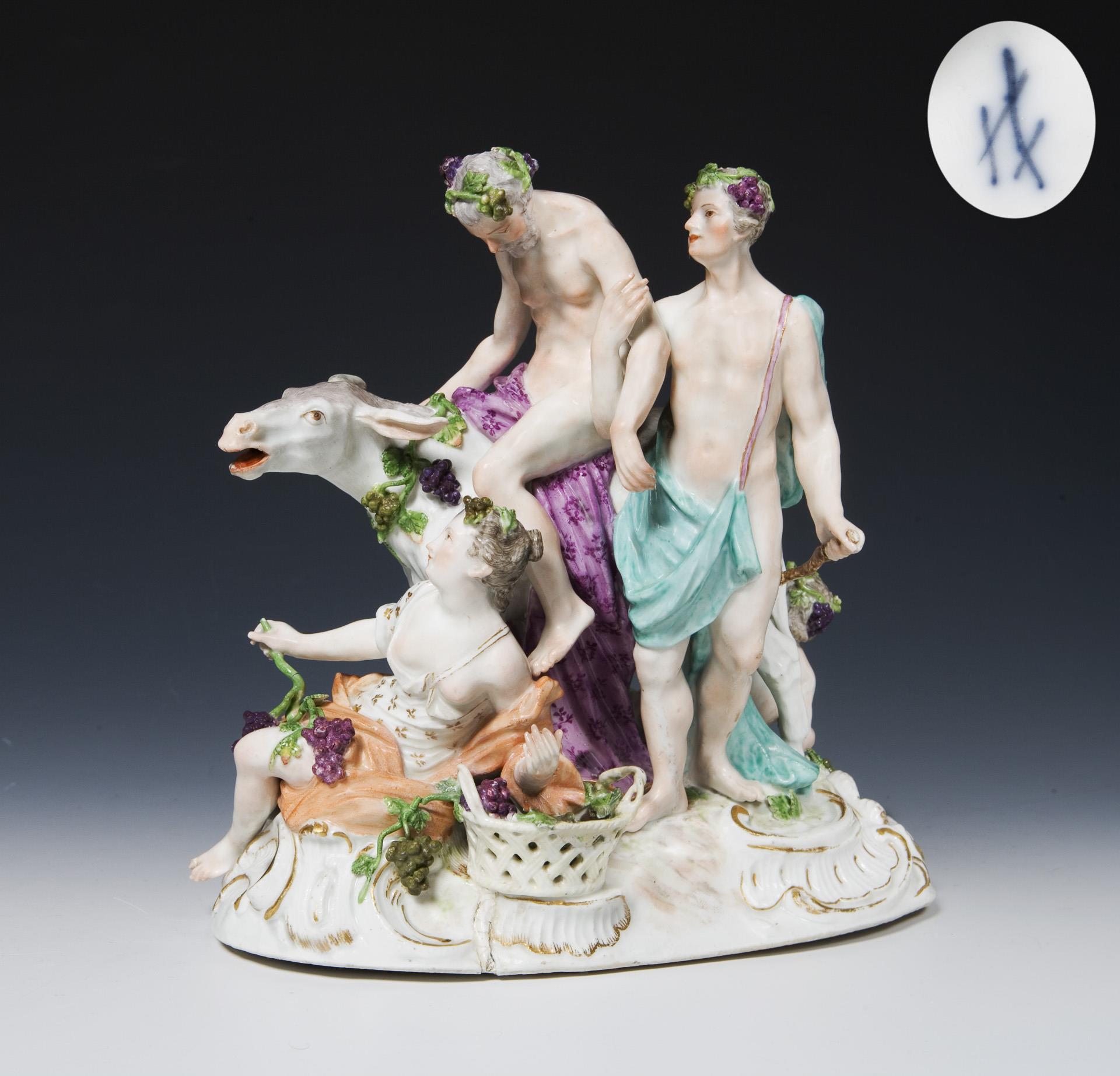 Barock-Figurengruppe: Silen auf Esel. Meissen.
