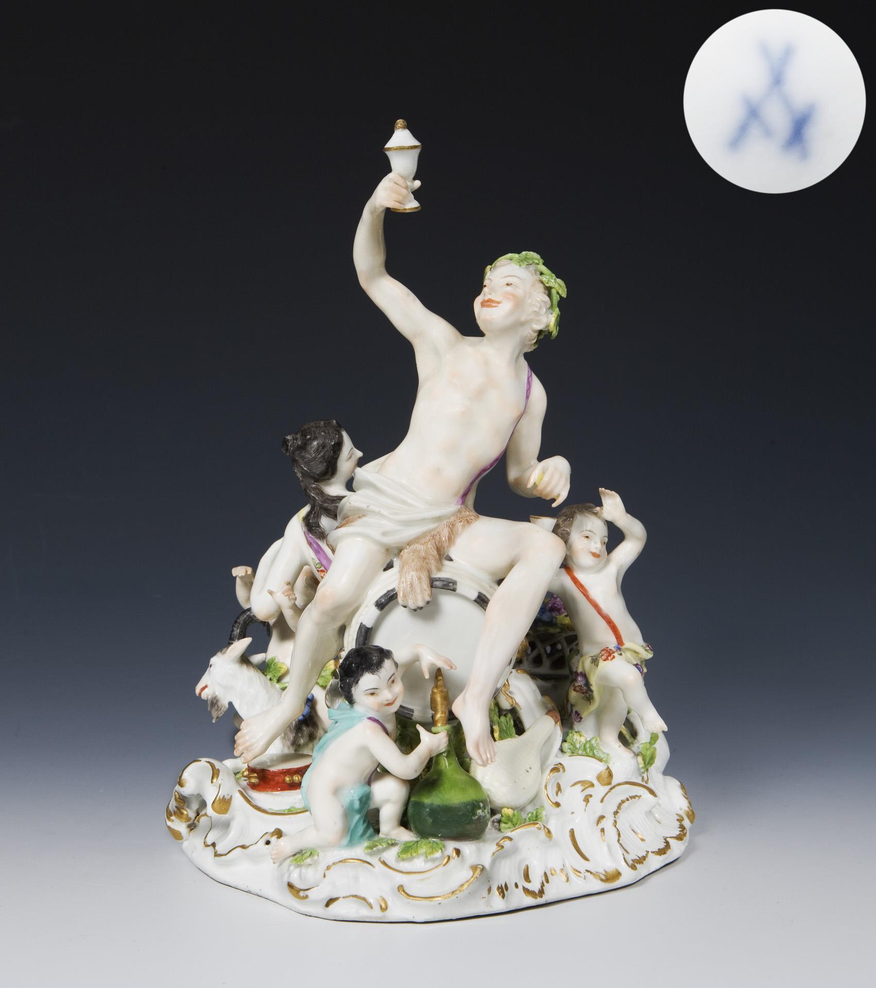 Barock-Figurengruppe: Bacchanal mit Weinfass. Meissen.