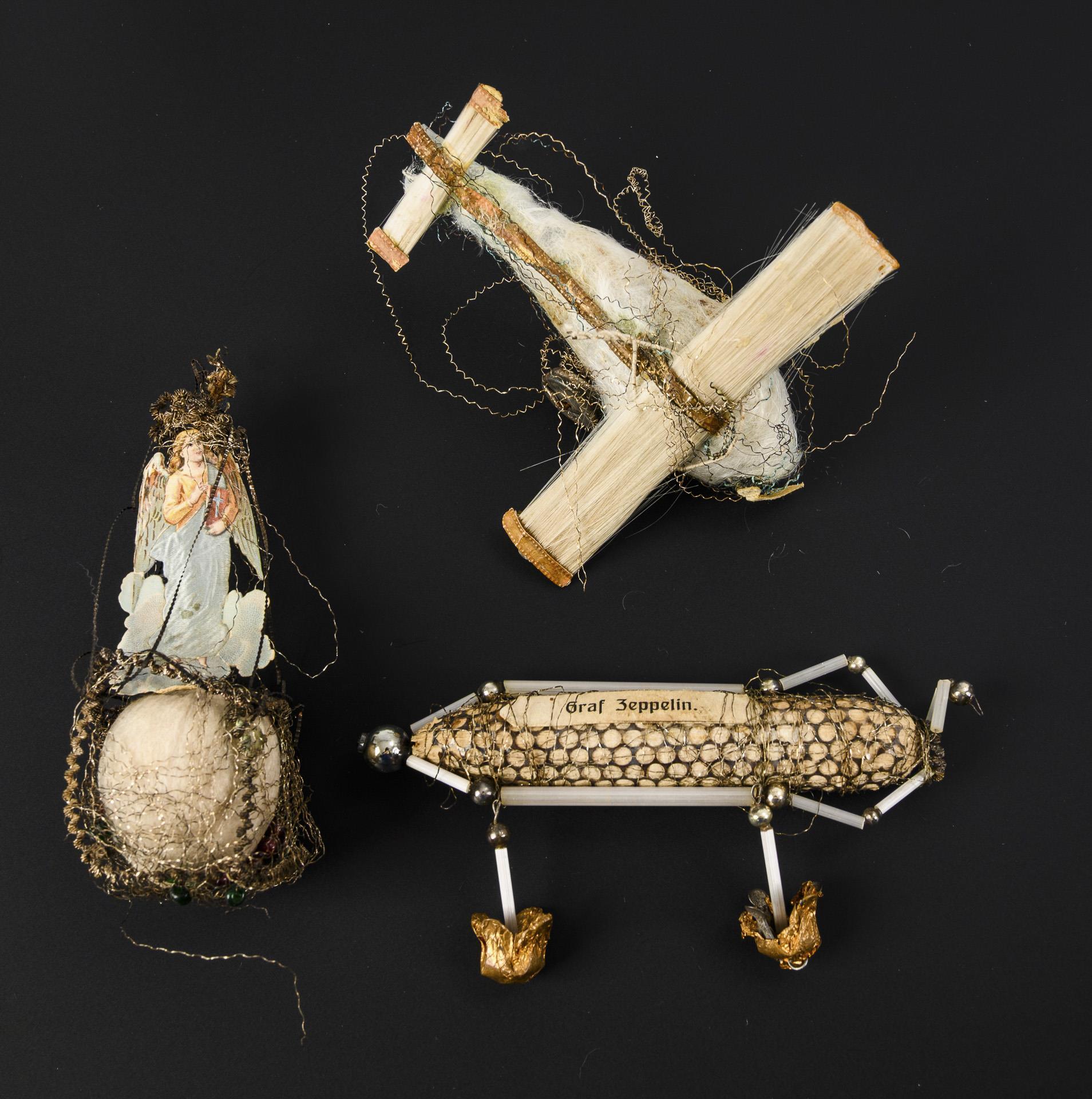 Zeppelin, Engel und Flugzeug für den Weihnachtsbaum.