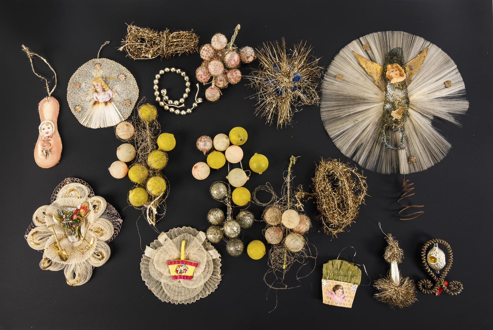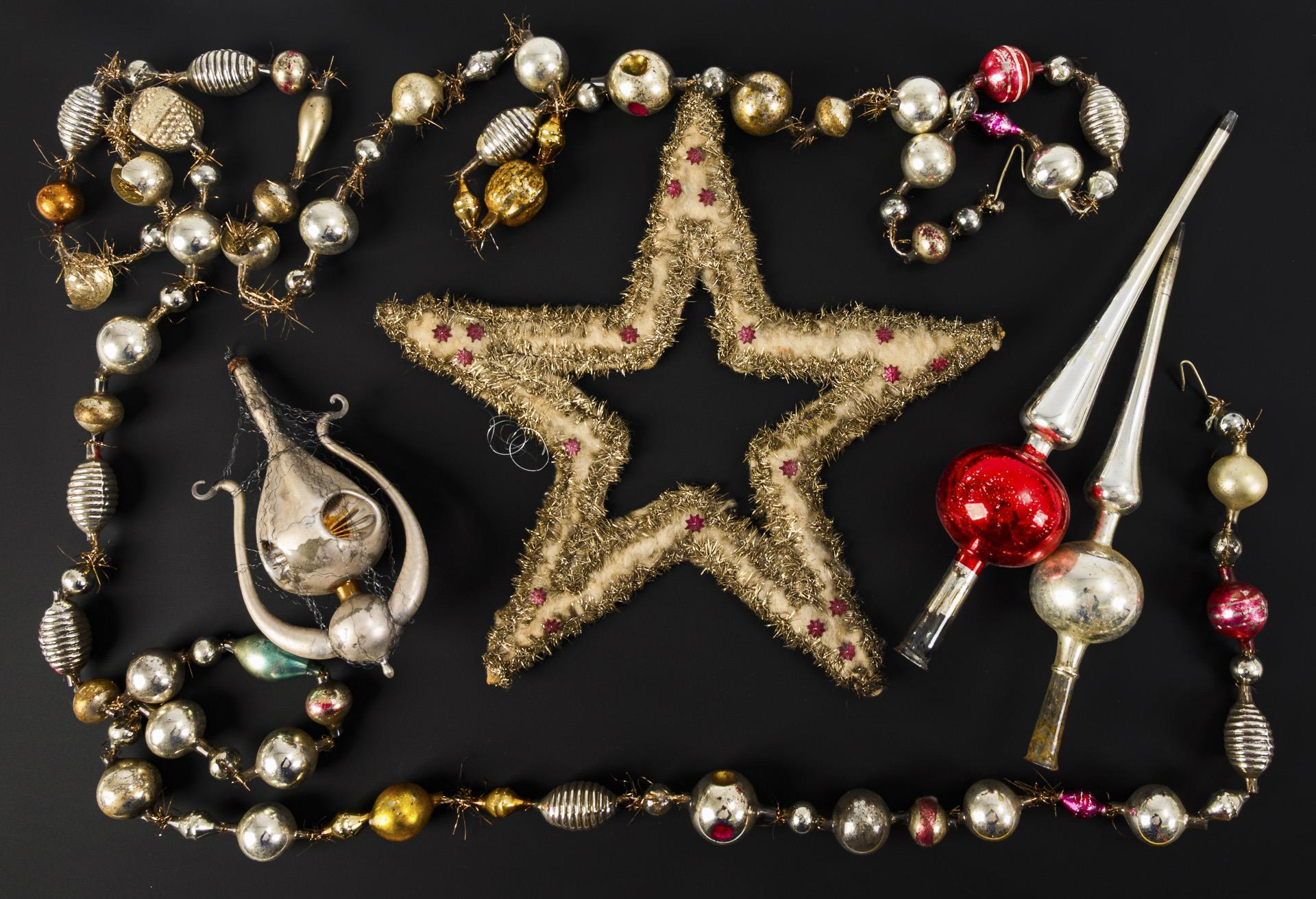 Konvolut Christbaumschmuck mit Baumspitze aus Engelshaar.