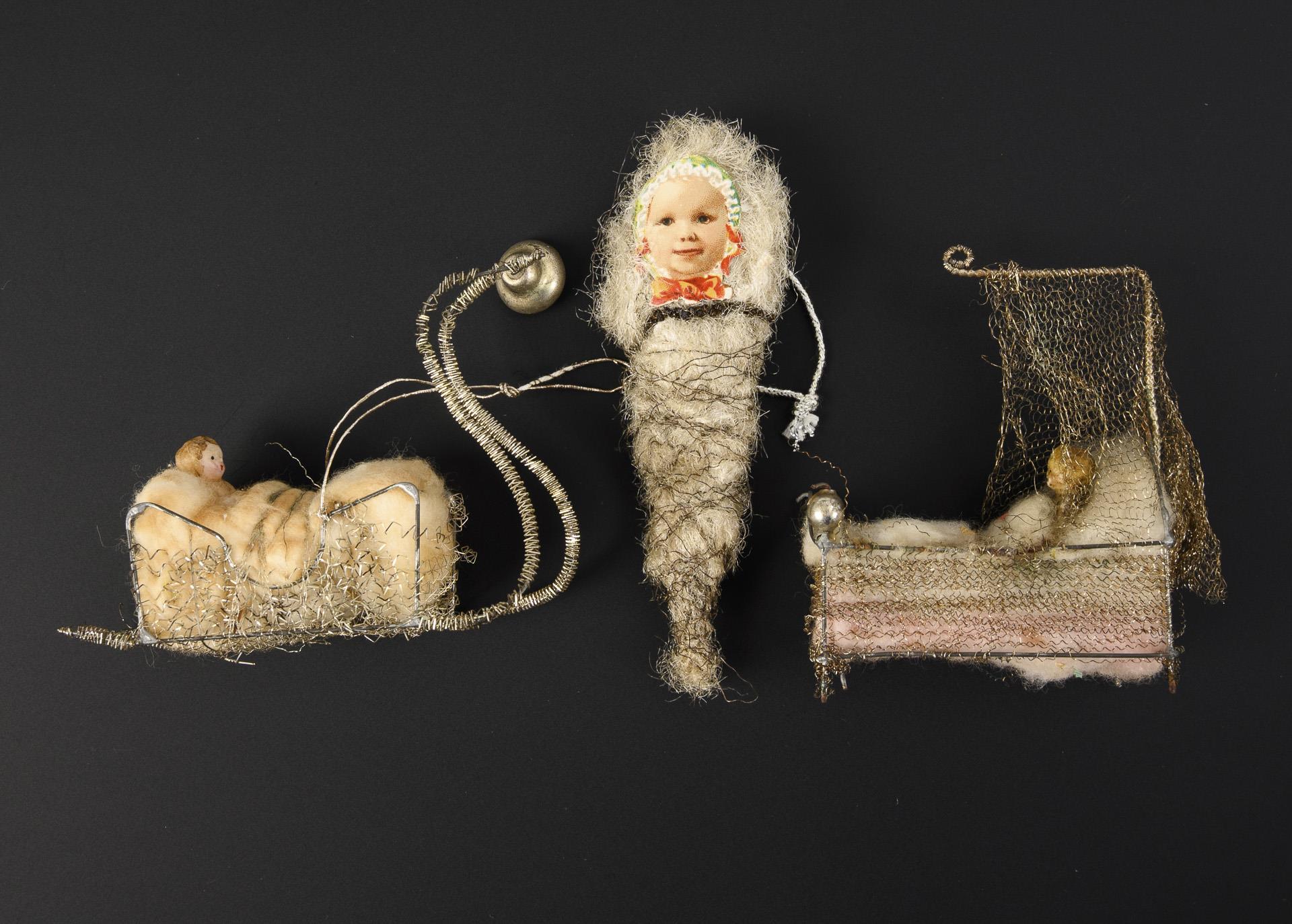 Für den Weihnachtsbaum. Schlitten, Bettchen und Wickelkind