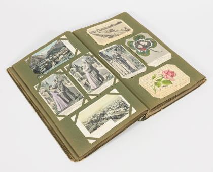 Postkartenalbum aus einem Haushalt.