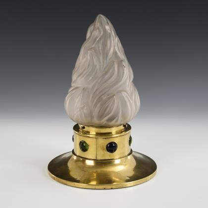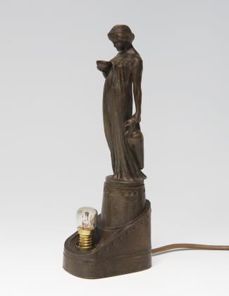Künstler-Signet, alt elektrifiziert, eine Lichtquelle. Für die Figur wurde der Künstler, wie so viele andere Bildhauer, von der Tänzerin Loie Fuller, alias Marie Louise Fuller (1862-1928) inspiriert, sie war die erste Tänzerin, die elektrisches Licht bei ihren Schleiertänzen einsetzte