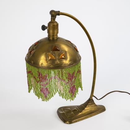 Jugendstil-Tischlampe mit Glasperlenbehang