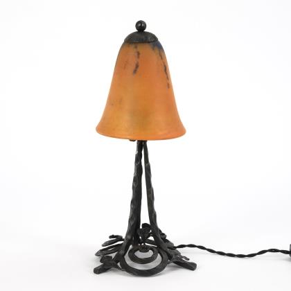 Französische Tischlampe. Lampe: Le Fer Forgé, Schirm: Muller Frères, Luneville.