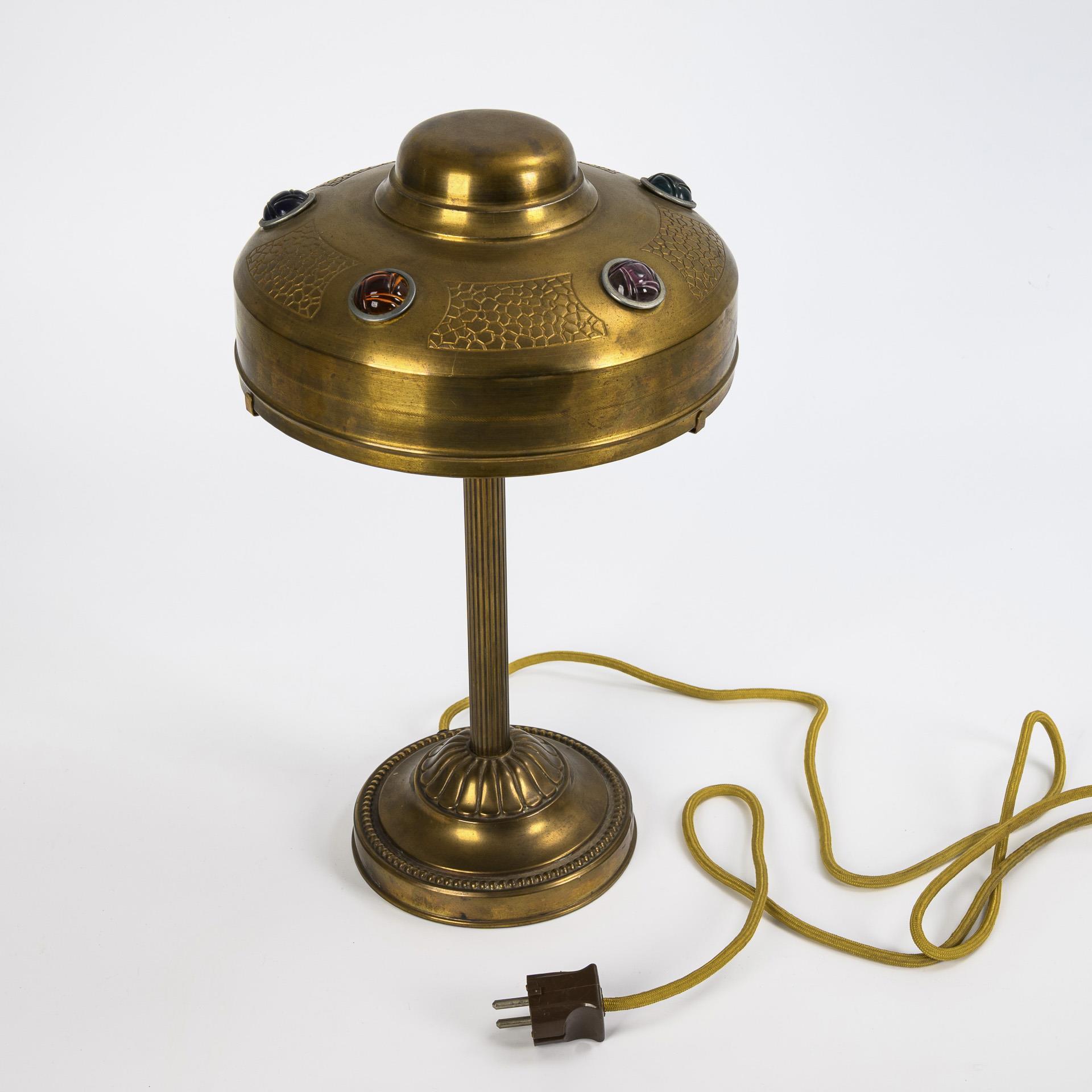 Art-déco-Tischlampe mit eingesetzten Cabochons.