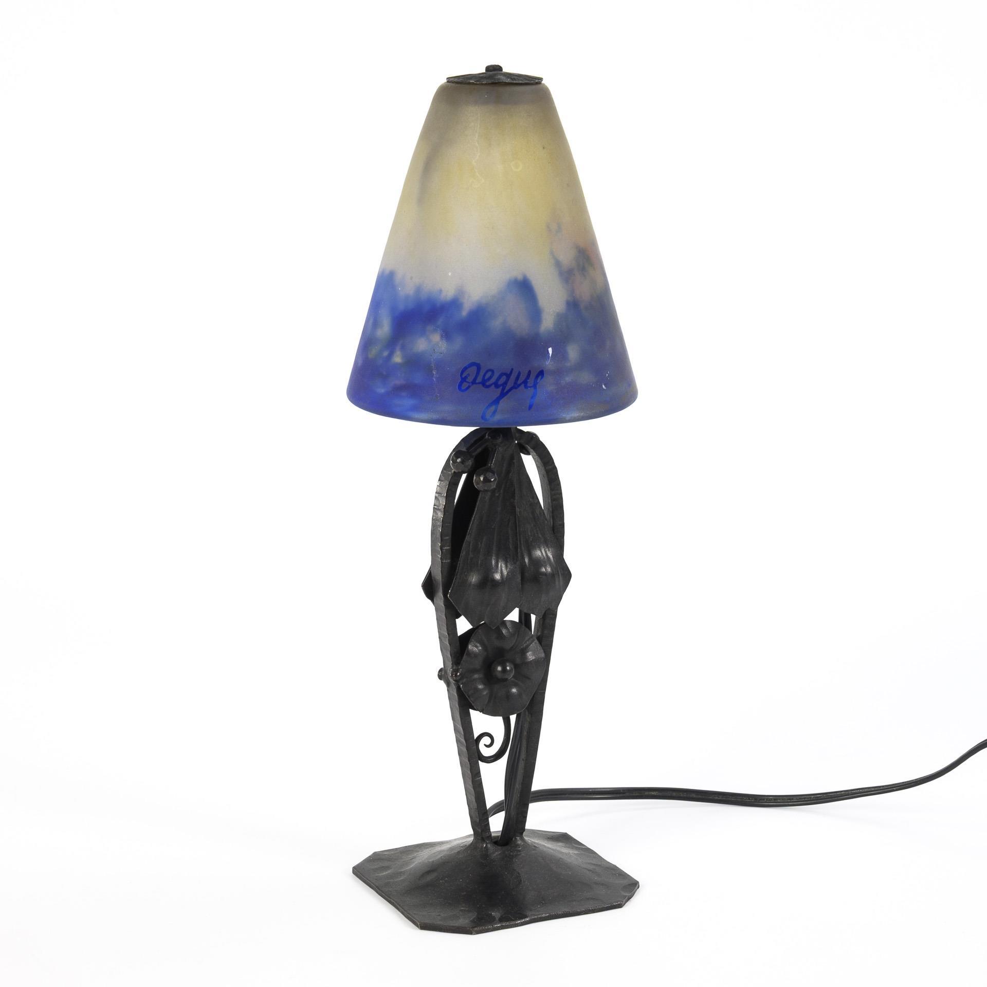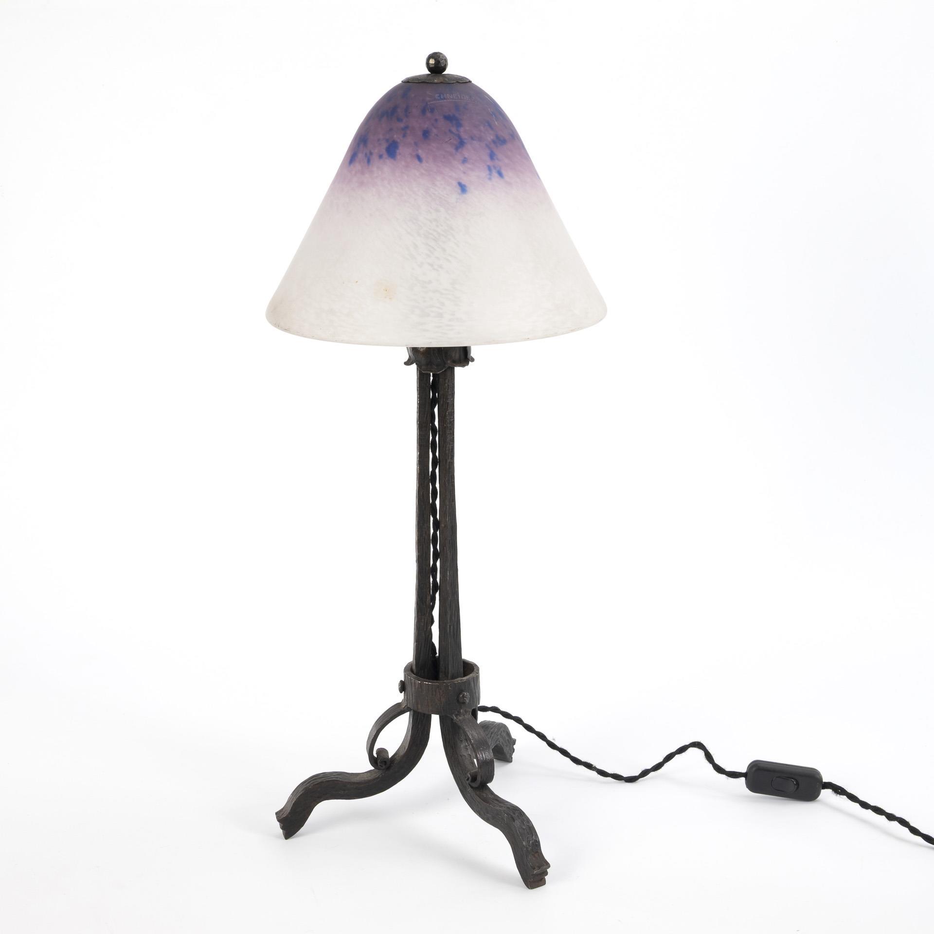 Französische Tischlampe. Lampe: Le Fer Forgé, Schirm: Muller Frères, Luneville.