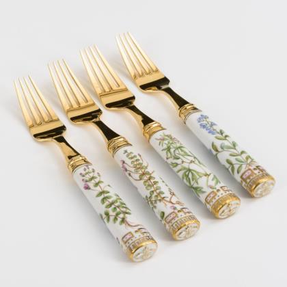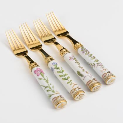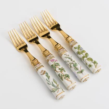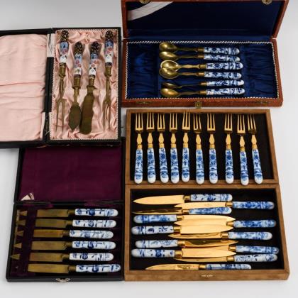 Obstbesteck, Löffel und Vorlegeteile mit Porzellangriffen