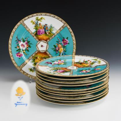 11 Teller mit Watteaumalerei