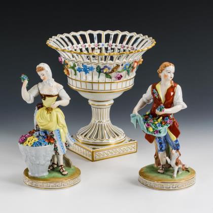 Tafelaufsatz und 2 Figuren