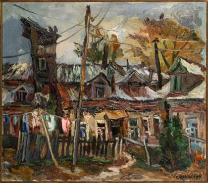 Kyrilllisch signiert. Rückseitig kyrillischer Stempel. Ohne Keilrahmen, ohne Rahmen