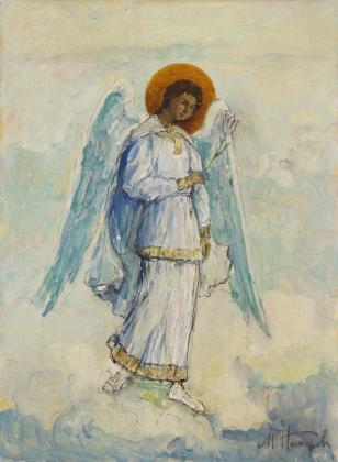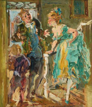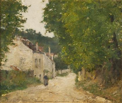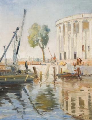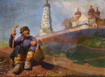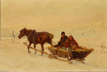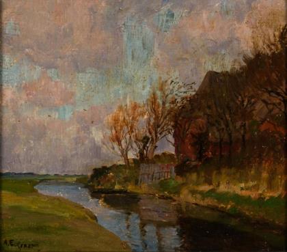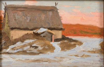 Ein romantisches, stimmungsvolles Motiv von herber und melancholischer Schönheit, fein interpretiert. Originaler Keilrahmen mit kyrillischem Klebezettel