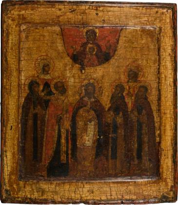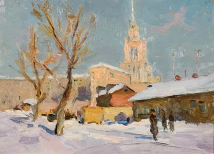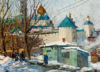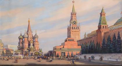 Im Leinen-Passepartout montiert. Montierter kyrillischer Titel. Ohne Rahmen