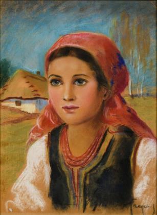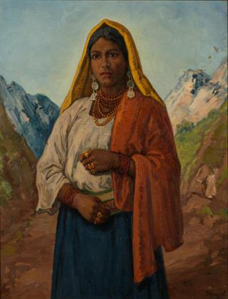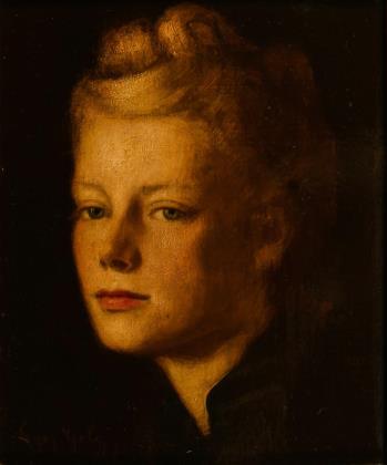 Bildnis einer jungen Frau mit langen schwarzen Haaren