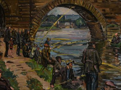 Monogrammist "HH": Zahlreiche Angler am Flussufer