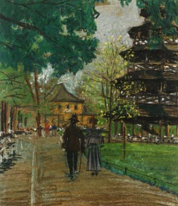 Spaziergänger im Park nahe dem Chinesischen Turm