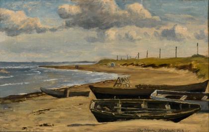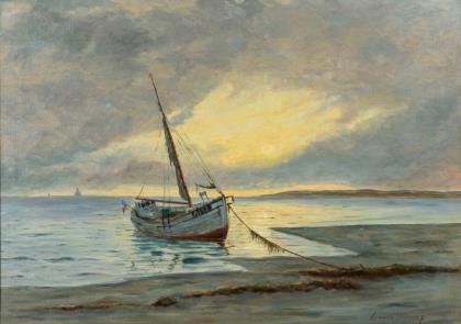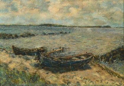 Monogrammist "ES": Fischerboote am sonnigen Strand