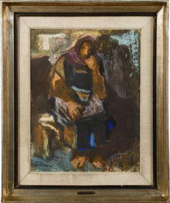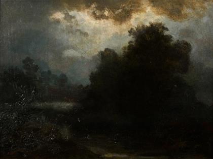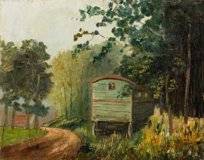 Deutscher Maler: Reisigsammlerin am Waldrand