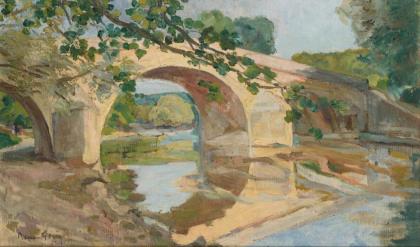 Unbekannter Neoimpressionist: Brücke am Fluss