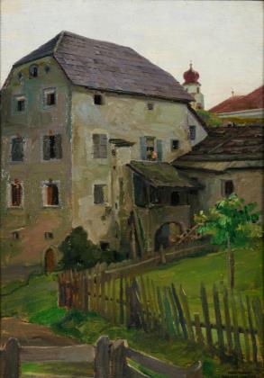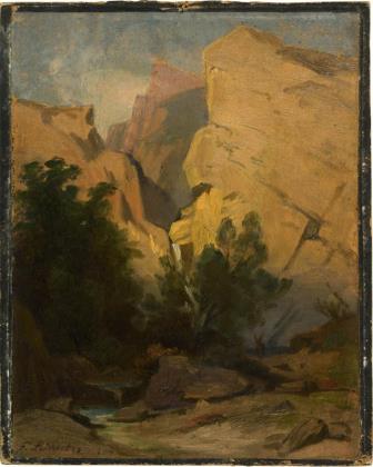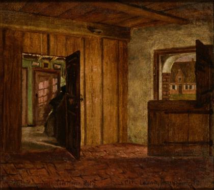 Rückseitig Klebezettel mit dem Titel. Originaler vergoldeter Stuckrahmen