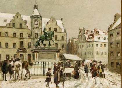 Düsseldorfer Maler: Jan Wellem Platz im Winter