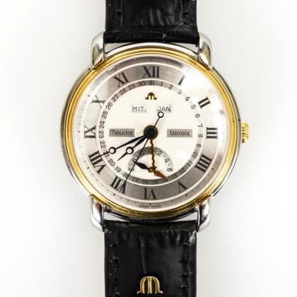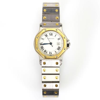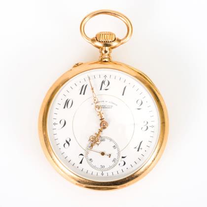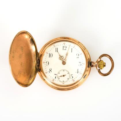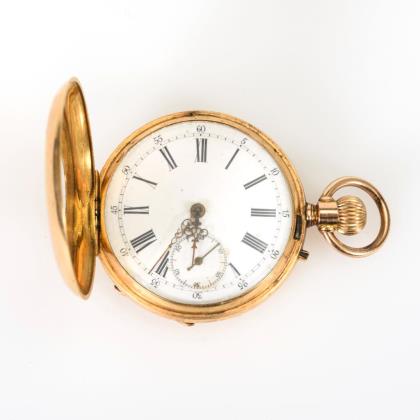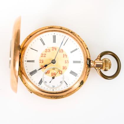 Goldene Taschenuhr an Doublé-Uhrenkette