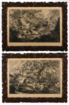 Nr. 67: "Die Pa Force Jagd eines Hirschen und wie er erlegt wird [...]" und Nr. 68: "Wie das Wildschwein gehäzt und ihm der Fang gegeben wird [...]"