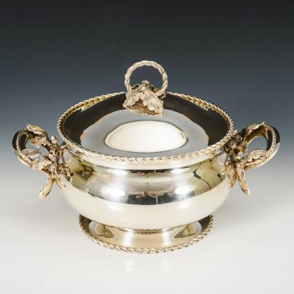 Schwere Terrine mit Kordelkante und plastischem Eichenblattdekor