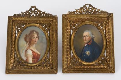 2 Miniaturen: Damenbildnisse in Goldstuckrahmen