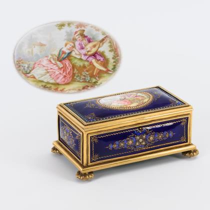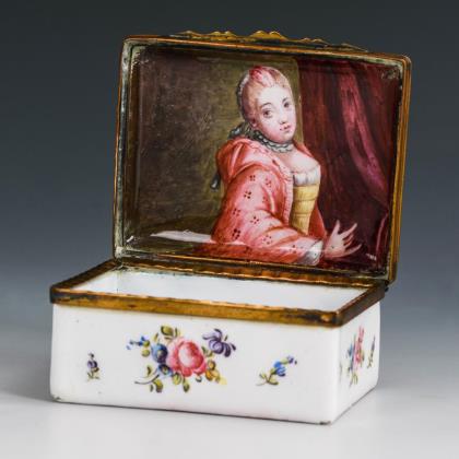 Email-Tabatiere mit Schäferpaar und Damenporträt