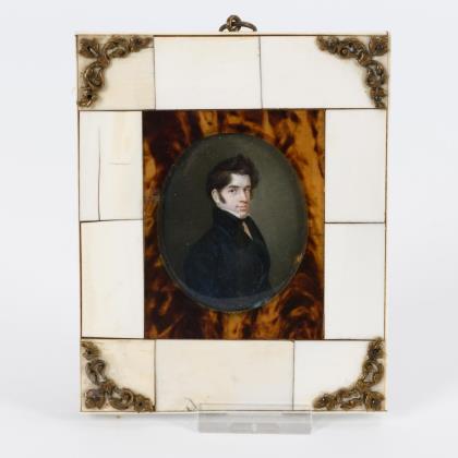Miniatur: Herrenbildnis im Elfenbeinrahmen mit Schildpatt