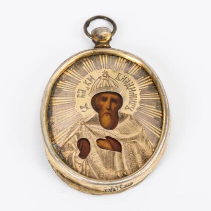 Russischer Silberanhänger mit Ikone in Schatulle