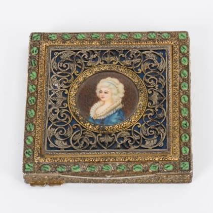Silberne Puderdose mit Miniatur