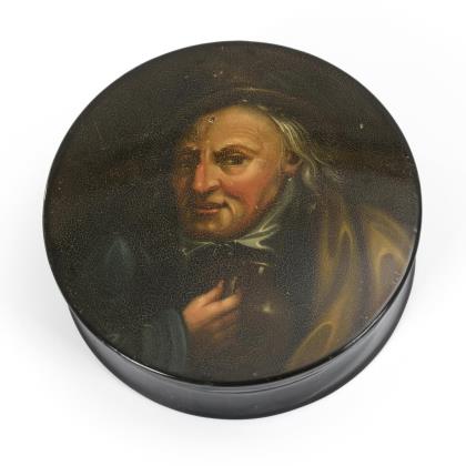 Runde Lackdose mit Männerporträt