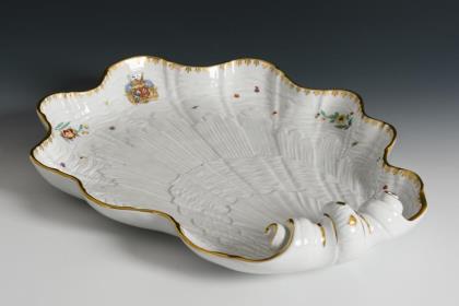 Große Muschelplatte mit dem Allianzwappen des Grafen von Brühl